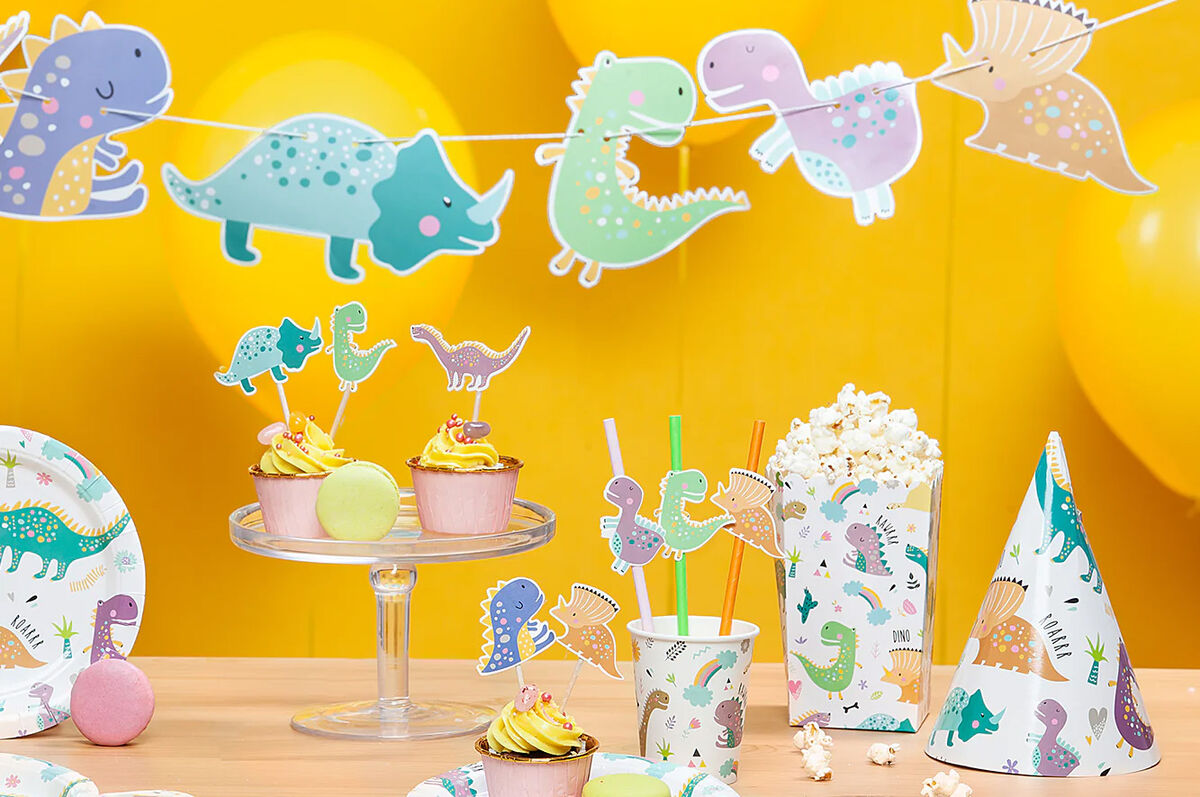 Tukevat paperimukit joissa on kuvituksena erilaisia dinosauruksia.